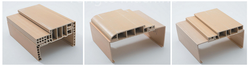 PE-muovi + 10-15 % lasikuituvahvisteinen + 50-60 % puujauhe + ikääntymistä estävä koekstrudoitu kerros + vahvistettu rakenne |